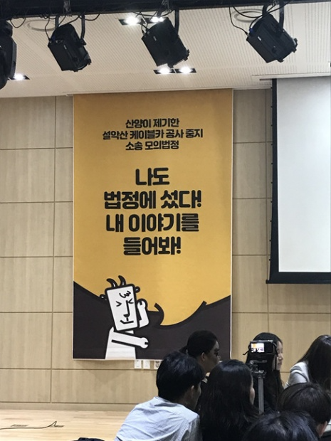 시민배심원단의 판결을 수용한 재판부의 선고가 이어졌다. “주문. 1. 피고는 설악산 오색구간에 케이블카 설치를 위한 공사를 진행해서는 아니 된다. 2. 집행관은 위 취지를 적당한 방법으로 공시하여야 한다. 피고는 제 1항의 의무를 위반하는 경우 1일당 100만 원씩 원고들에게 지급한다. 탕탕탕”