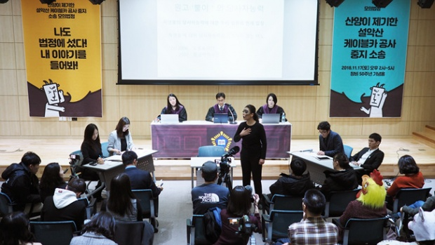 재판이 시작되자마자 설악산 케이블카 사업자 피고 대리인은 현재 자연물 자체의 법적 권리를 인정하지 않는 법률이 없는 이상 이 소송은 각하되어야 한다고 주장했다.
