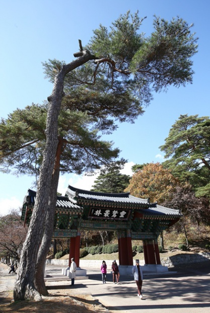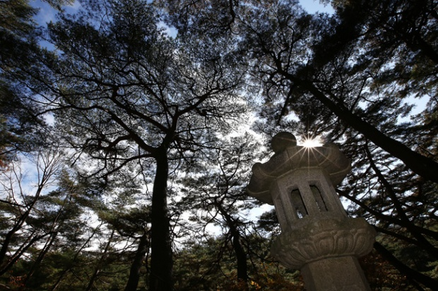 통도사 경내를 돌아 다시 무풍한송길로 접어든다. 오를 때의 길과 내려 갈 때의 걷는 맛이 다르다. 빛이 조금 더 약해져서 솔 그늘이 살짝 더 짙어졌다. 허공을 올려다보니 우듬지까지 퍼진 솔가지들이 하늘에 차양을 치고 있다. 통도사를 영축총림으로 키운 대선사 월하(月下·191502003)스님이 열반하신 지 10여 년이 훨씬 더 지났다. 그 분이 학인이던 시절 일제 치하의 통도사는 독립운동하던 이들에게 군자금을 모아 보내던 곳이었다. 날이 차가워지던 그 가을, 승 하나가 모금한 금을 들고 산문을 내려가는 풍경이 보인다. 불(佛)이 속(俗)을 돕던 아름다운 풍경이다. 통도사가 무풍한송길을 가꾸는 것 또한 그런 일이다. 자연을 돕는 일은 성속(聖俗)을 함께 돕는 일이다. 아름다운 길에 더 아름다운 이야기들이 피어나길 기대한다.