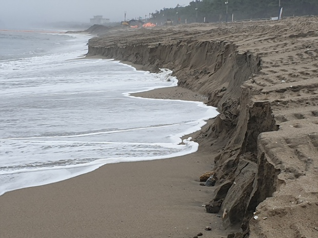 석탄화력발전소 공사로 깎여나간 삼척 맹방해변 ⓒ김덕년