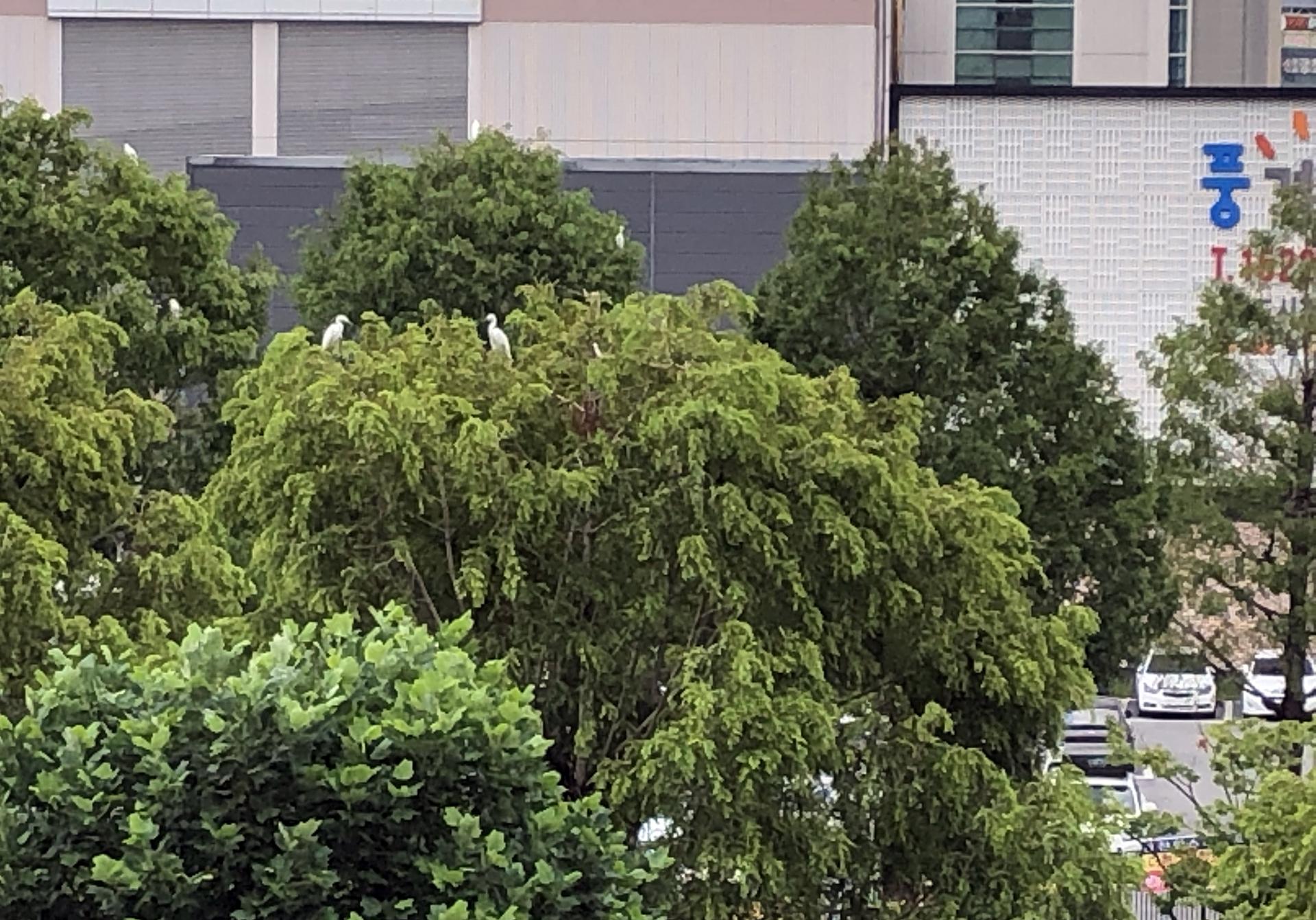 광주광역시 화정동 교원공제회 사거리 가로수에 둥지를 튼 백로들 ⓒ이경희