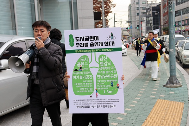 최근 서울시가 한남공원을 공원화하겠다고 발표했다. 사진은 지난해 11월 열린 한남근린공원 조성 촉구시민문화제 거리 행진 Ⓒ서울환경운동연합