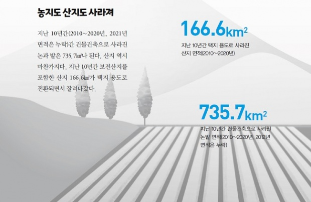 아파트 짓겠다며 그린벨트를 해제한 일은 이번이 처음은 아니다. 당장 2019년 발표했던 인천 계양테크노밸리, 과천 과천, 남양주 왕숙, 하남 교산, 부천 대장 등 3기 신도시의 94%도 그린벨트 지역이었다. 이처럼 택지조성 등을 내세워 야금야금 해제된 그린벨트는 무려 1567.9㎢. 2020년 말 기준으로 3829.2㎢만 남아있으나 이마저도 이번 신도시 택지를 시작으로 줄어들게 됐다.