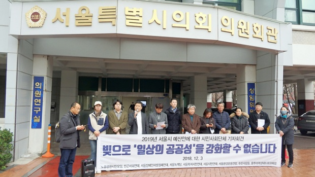 12월 3일 서울시민재정네트워크(준)는 2019년 서울시예산안의 문제점을 지적하는 기자회견을 열었다 ⓒ서울환경운동연합