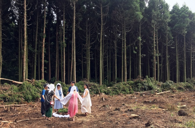 제주의 8월은 산이 바다가 되고, 바다는 하늘과 하나가 되는 계절이다. 한라산 밑자락으로 펼쳐진 제주의 오름과 초원, 울울창창한 곶자왈 숲지대는 당장이라도 뛰어들고 싶은 초록빛 바다가 된다. 그 한가운데에서 시작된 비자림로를 달리다 보면 어두운 숲의 바다가 모세의 기적처럼 열리기 시작하고, 머리 위로는 숲의 파도가 일렁이며 한여름의 강한 볕을 가려 그늘을 만든다. 그러나 지난 8월 초입 익숙한 풍경을 만나는 주민들과 새로운 경험에 들뜬 관광객들은 비자림로 한복판에서 예기치 못한 상황에 당황하게 된다. 늘 있어야 하는 풍경이, 설레며 처음 만나려는 풍경이 눈앞에서 사라져가고 있었기 때문이다. 마치 쓰나미가 덮치듯이 숲의 바다가 싹둑싹둑 잘려 쓰러지고 있었다. 그 파괴의 현장에는 이 상황을 이해시켜 줄 사람 하나 없고 일방 통보하듯 한쪽 편에 도로 확장공사 안내판 하나가 우두커니 서 있을 뿐이었다.