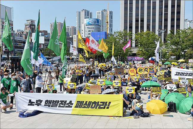 6월 18일 부산역 광장에서 6.18전국탈핵행동이 진행됐다. 이날 전국에서 모인 환경연합 활동가와 회원,