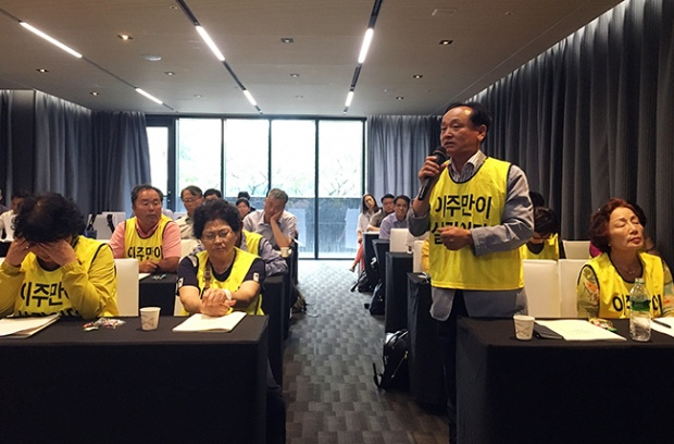 지난 9월 열린 '월성 원전 인근 이주요구의 타당성과 제도개선 방향' 국회토론회에 참여한 나아리 주민이 한수원과 정부 측에 이주대책을 요구하고 있다 ⓒ이상홍