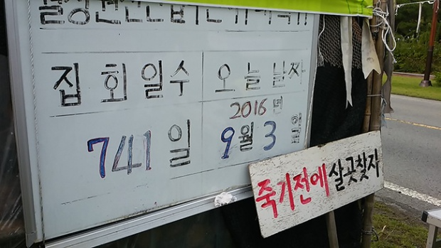 월성원전 인근 나아리 주민들은 집단 이주를 요구하며 2년 넘게 천막농성 중이다 ⓒ이상희