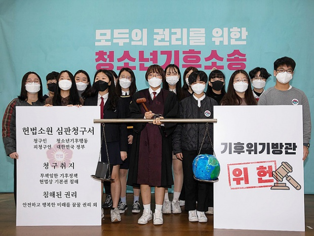 대한민국 청소년들이 정부와 국회가 기후변화를 방치하고 있다며 헌법소원을 제기했다. 지난 3월 13일 청소년기후행동 소속 청소년 19명은 정부의 소극적인 온실가스 감축 목표가 헌법에 보장된 국민의 기본권을 침해하는 것이라며 헌법재판소 앞에서 기자회견을 열고 헌법재판소에 청구서를 제출했다. 청소년기후행동은 기후위기 문제의 시급성에 공감한 한국의 청소년들이 주도해서 만든 조직으로 그동안 기후위기의 가장 큰 피해자이자 당사자임을 호소하며 정부를 비롯한 기성세대에 적극적인 기후위기 대응을 촉구해왔다. 청소년들이 정부를 상대로 기후 관련 소송을 제기한 것은 아시아에서 최초다.