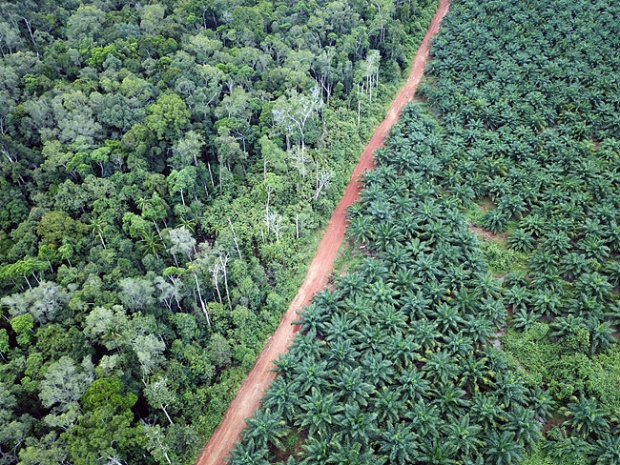 보존되어 있는 토착민들의 숲(좌측)과 팜야자나무 플랜테이션(우측) ⒸPUSAKA