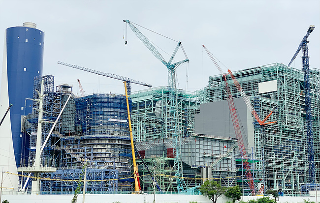 건설 중인 강릉안인석탄화력발전소. 가동할 경우 연간 약 1500만톤의 온실가스와 막대한 대기오염물질을 배출할 것으로 예상되고 있다