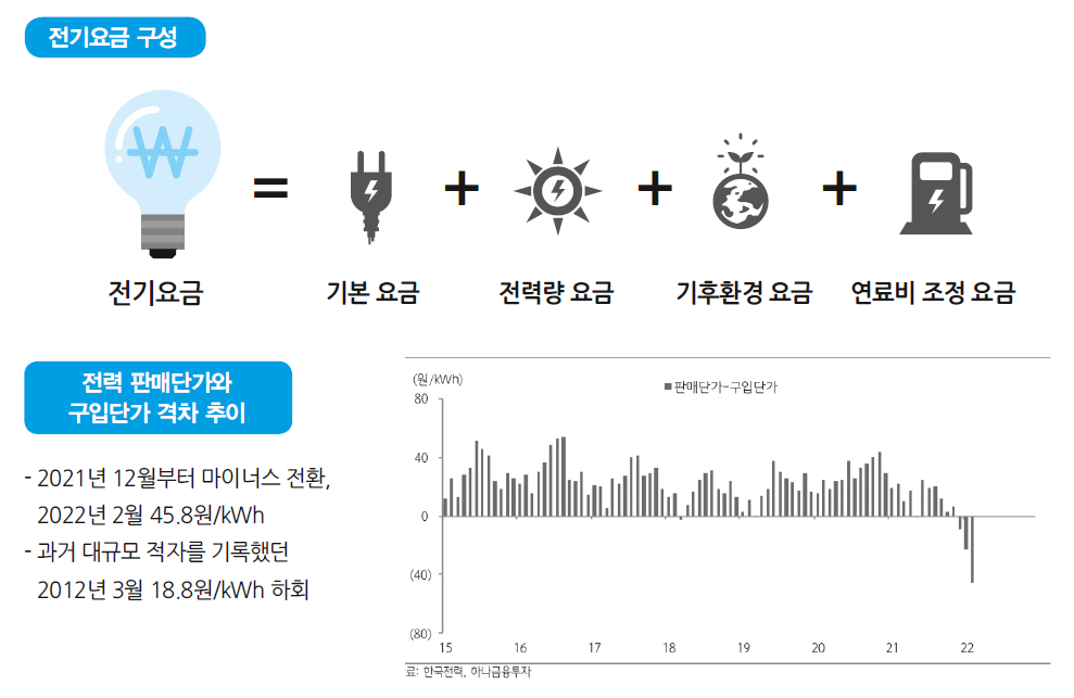 전기요금 인상의 직접적 요인은 한국전력공사(한전)의 적자 누적이다. 한전은 올 1분기에만 7조 7869억 원의 영업 손실을 냈다. 역대 최대치다. 이런 추세라면 올해 한전의 적자 규모가 30조 원에 이를 것으로 전망된다. 이번 요금 인상과 관련해 한전은 “국제 연료가격 급등으로 큰 폭의 전기요금 인상요인이 발생하고 한전 재무여건이 악화되는 여건을 고려한 불가피한 결정”이라고 설명했다.