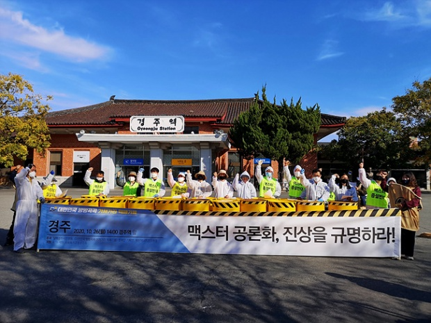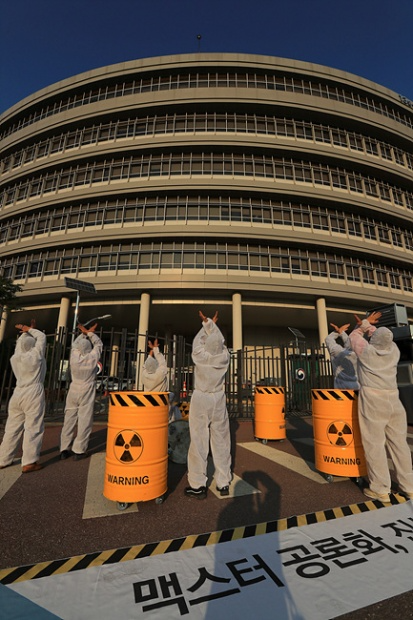 “ 온 국민이 손사래 치는 방폐장을 2005년 유치한 것도 더 위험한 고준위핵폐기물을 내보내기 위한 고육책이었다. 그렇게 받아낸 고준위핵폐기물 2016년 반출 약속은 헌신짝이 되었고, 공론화 방망이로 술수를 부려 고준위핵폐기물을 더 쌓아놓기 위한 맥스터가 건설되고 있다. 중저준위 방사성폐기물처분장 유치지역 지원에 관한 특별법 18조의 ‘사용후핵연료 관련 시설은 유치지역에 건설하여서는 아니 된다’에서 금지하고 있는 시설이 바로 맥스터다. 맥스터는 결코 건설될 수 없다.” -탈핵경주시민공동행동