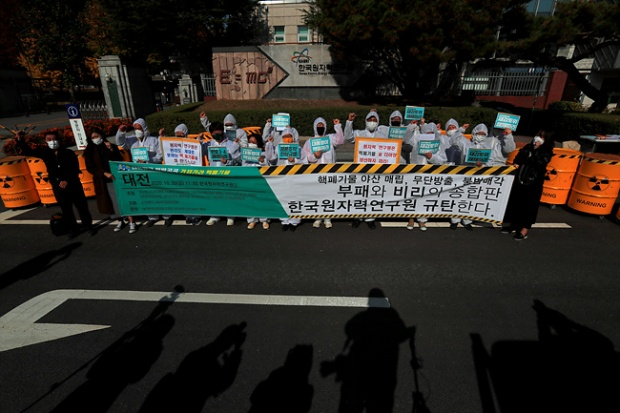 “대전은 한국원자력연구원과 핵연료주식회사, 그리고 각종 방사성폐기물 등이 밀집되어있는 핵시설 클러스터가 형성되어있다. 무엇보다도 우려스러운 것은 바로 인근에 대규모 아파트와 같은 주거, 상업시설이 형성되어있고 매해 크고 작은 핵 관련 사건, 사고는 꾸준히 증가하고 있어 시민들의 불안이 가중되고 있는 상황이다. 대전의 특수성을 고려한 원자력 시설 법, 제도 개선을 통해 안전규제 강화하라! 정부는 한국원자력연구원을 전면 감사하고 하나로 원자로 재가동 철회하라. 보관 중인 방사성폐기물의 조기 이송 진행하라! 대전시와 유성구는 주민안전대책을 강화하고 시행하라.”- 대전충남녹색연합·대전환경운동연합·대전한살림·대전탈핵희망·정의당대전시당·진보당대전시당·사회변혁노동자당충북도당