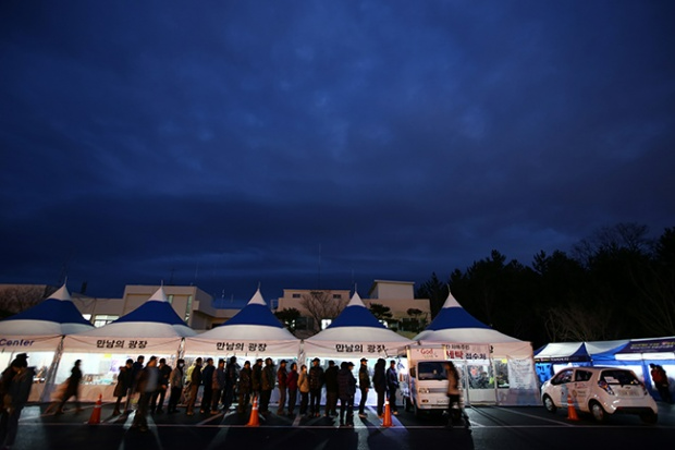 “온풍기도 틀어주고 핫팩도 주고 영감, 할매 둘이 한 텐트서 자니 춥지는 않아. 빨래차도 오고 밥도 주고 그러니 딱 죽겠다 싶진 않지. 그래도 집이 아니잖아. 씻는 거 불편하고 공기가 나빠. 감기가 유행인데 별 수 없지. 애들이 고생이지. 여기 어린애들이 한 20명 되는데 놀이방이 있어도 그렇지 딱해. 여기 사람들은 지진 나고 하루, 이틀 후에 들어온 이들이야. 이제 두 달이 되지. 언제 나갈 수 있을지 아득해. -김연리(72세) 흥해실내체육관 대피소