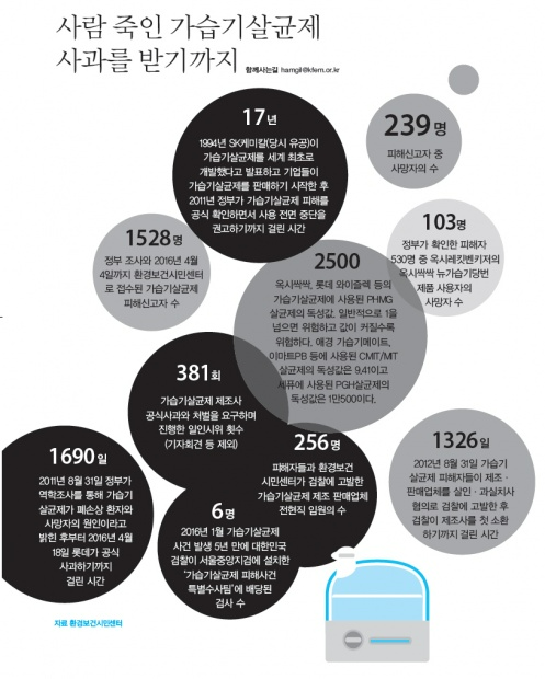 숫자로 보는 환경이슈[숫자로 본 환경이슈 38] 사람죽인 가습기살균제 사과를 받기까지