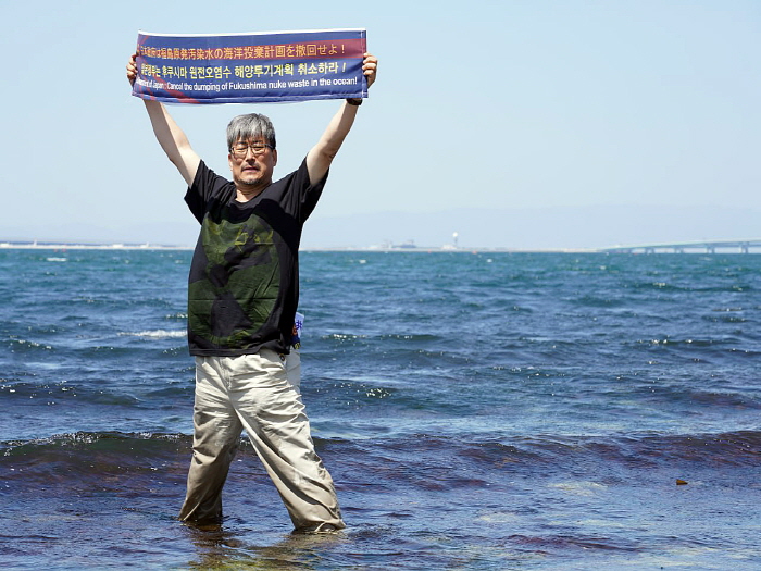 최예용 환경운동연합 바다위원회 부위원장의 후쿠시마 원전오염수 해양투기계획 취소를 요구하는 해변 1인시위 Ⓒ Kataoka Akihiko