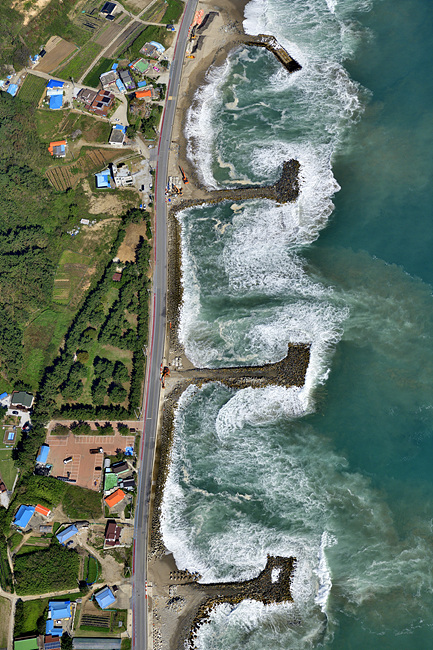 울진 근남면 해변. 해안침식을 방지하는 시설을 만드는 모습. 정밀한 조사와 올바른 방지대책이 시급해 보인다