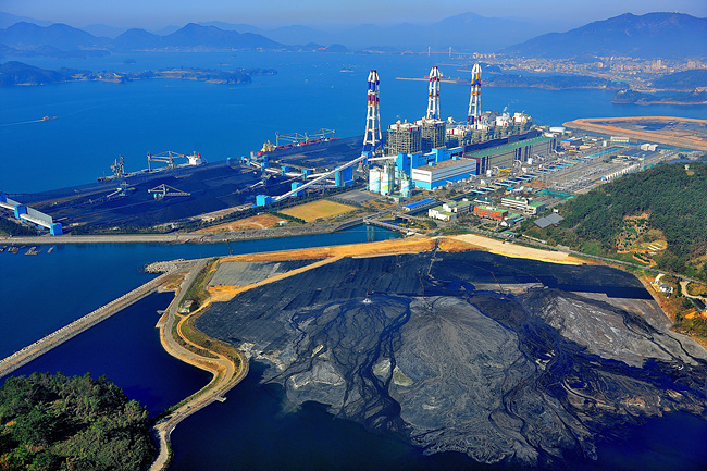 사천 삼천포 석탄화력발전소. 유연탄을 사용한 발전소에서 나오는 미세먼지와 슬러지는 해결해야 할 짐이다