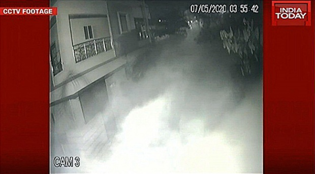 LG화학 인도공장에서 스티렌가스가 뿜어져나와 마을을 뒤덮는 CCTV 사진 출처 인디아투데이 영상 캡처