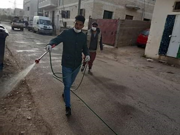 UAWC 직원이 마을의 공공시설 방역활동을 하고 있다 사진제공 팔레스타인 UAWC