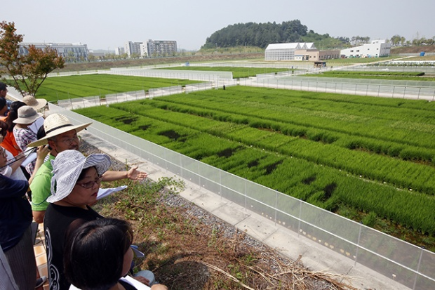 호남평야 길목에서 GM벼 실험 재배하는 농진청