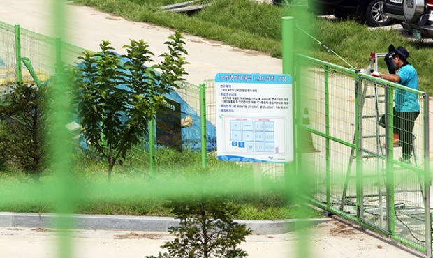 전북 완주군 이서면에 위치한 농진청의 유전자변형식물 재배 격리 포장시설. 농진청은 이곳에서 GM벼 등을 실험재배하고 있다 ⓒ함께사는길 이성수