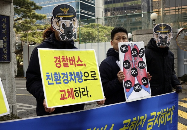 지난 2월 4일 서울환경연합은 서울지방경찰청 앞에서 ‘경찰버스 공회전 금지’를 촉구하는 기자회견과 민원을 제기했다.