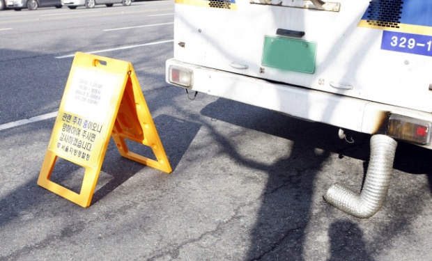 대기중 경찰버스 공회전 금지해야