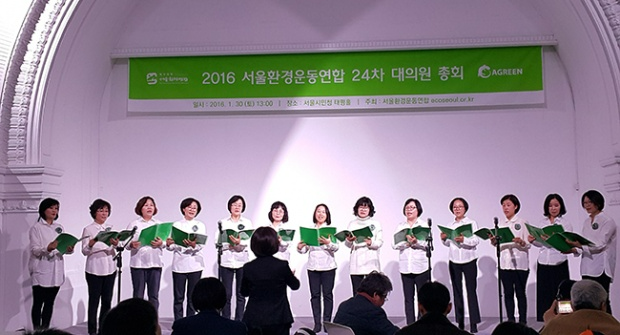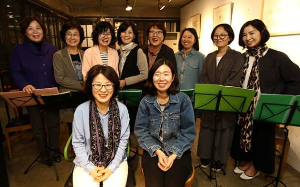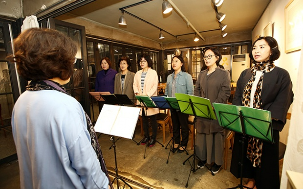 월요일 저녁, 서울 종로구 환경센터 에코생협 옆 카페에 중년 여성들이 모였다. 장바구니는 한쪽 테이블 위에 놓고는 입술을 풀고 피아노 반주에 맞춰 발성 연습하는 모습이 꽤 진지하다. 이 시간만큼은 그 누구의 엄마도 아내도 아니고 잔소리할 필요도 없다. 지휘자의 지도에 따라 피아노 반주에 맞춰 한 옥타브씩 올리는 그네들의 목소리가 참으로 곱다. 환경연합 전문기관인 에코생협 조합원들의 소모임, 에코콰이어다.