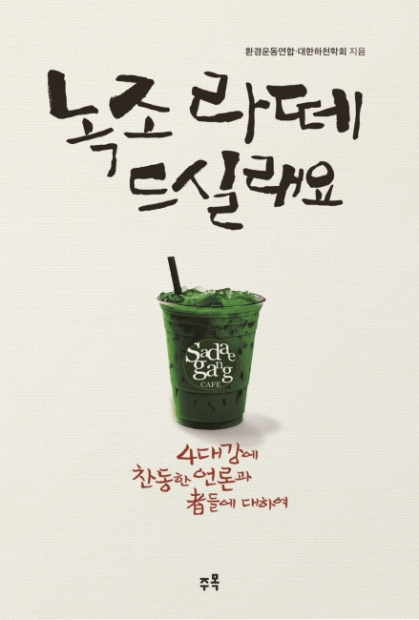 4대강사업 저지를 위해 헌신한 시민단체, 환경운동연합과 4대강사업이 불러올 피해에 대한 전문가적 견해를 피력해온 대한하천학회가 함께 중요한 책 한 권을 냈다. 『녹조라떼 드실래요』가 그것이다. 이 책의 부제는 ‘4대강에 찬동한 언론과 者들에 대하여’이다. 4대강사업 심판을 위한 시민들의 기록이 한 권의 책으로 묶인 것이다. 환경운동연합과 대한하천학회는 지난2009년 ‘4대강 사업 찬동 인사 조사’를 시작으로 7년 동안 이들 4대강사업 부역자들의 행적을 추적해왔다. 부역자들의 금빛 찬란한 수사에도 불구하고, 현실의 4대강은 4대강사업 이후 환경운동연합과 대한하천학회가 예견한 그대로, 아니 그 이상으로 망가졌고 상황은 계속 악화되고 있다. 이제 토막 나 호소가 된 옛 강들에는 큰빗이끼벌레와 어류 기생충이 창궐하고 물고기가 때마다 폐사하며 독성물질을 내뿜는 녹조가 번성한다. 곤죽처럼 녹색으로 강을 덮은 녹조는 녹조라떼라는 비아냥거림의 대상이 됐다. 4대강사업 부역자들은 물론이고 이 참혹한 강의 현실 앞에서 4대강사업 저지를 위한 시민행동에 침묵했던 다수의, 익명의 우리들에게도 책은 묻는다. “녹조라떼 드실래요?”