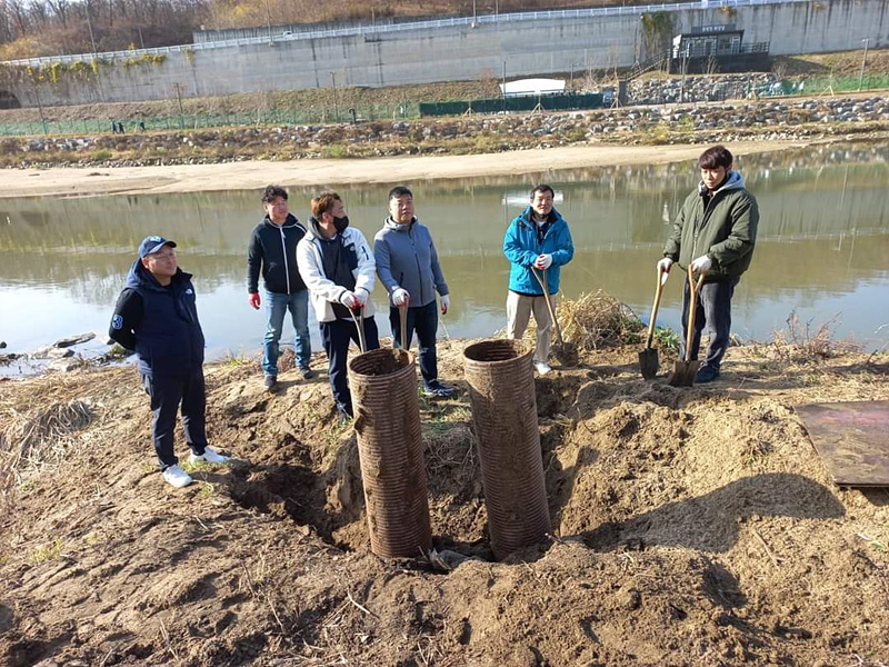 중랑천 수달 서식지 조성사업에 참여한 시민들 ⓒ중랑천환경센터
